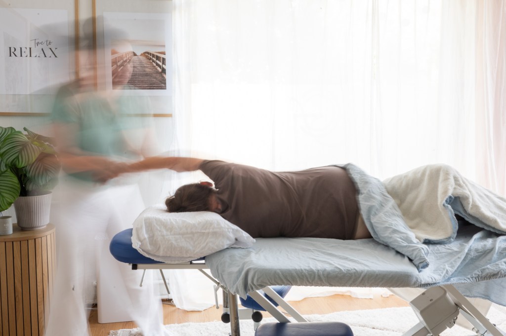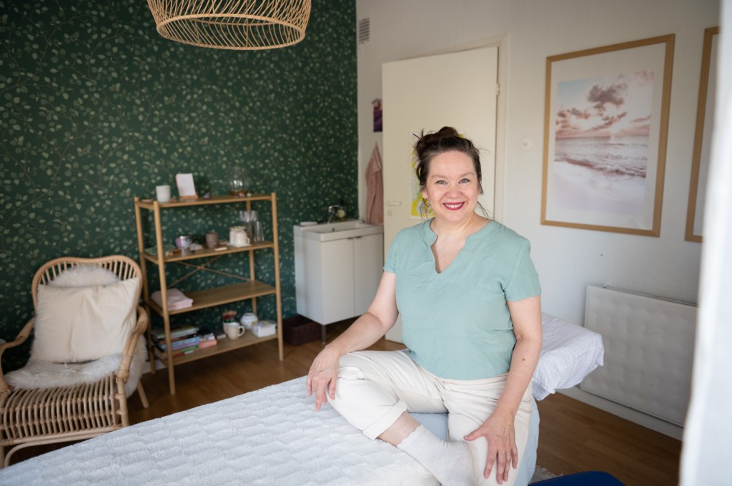 Opiskelin raskausajan- ja synnytyksen jälkeisen hieronnan perusteet alan oppikirjoja kirjoittaneen Carol Osbornen kursseilla. Hän on innostava opettaja, jonka menetelmissä tunnen hänen lämpönsä tulevia ja uusia vanhempia kohtaan. Myös tämä koulutus kulminoitui käytännön kokeisiin, joiden aikana hieroin raskaana olevia asiakkaita. Raskaushieronnan kulmakivi on hierottavan rentoutuminen, siksi kiinnitän paljon huomiota asiakkaan tukemiseen hyvään asentoon, huomioiden myös syntymättömän lapsen mukavuuden.
